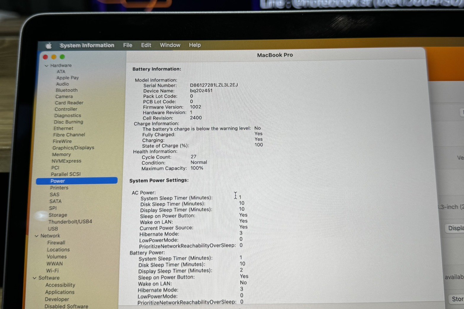 :ตัวเครื่องมีรอยตามการใช้งาน รอยจอนอก ตามรูป ***ปุ่มoption อ้าเล็กน้อย*** ใช้งานได้ปกติทุกอย่าง รอบชาร์จ Cycle count 27 ครั้ง สุขภาพแบตปกติ