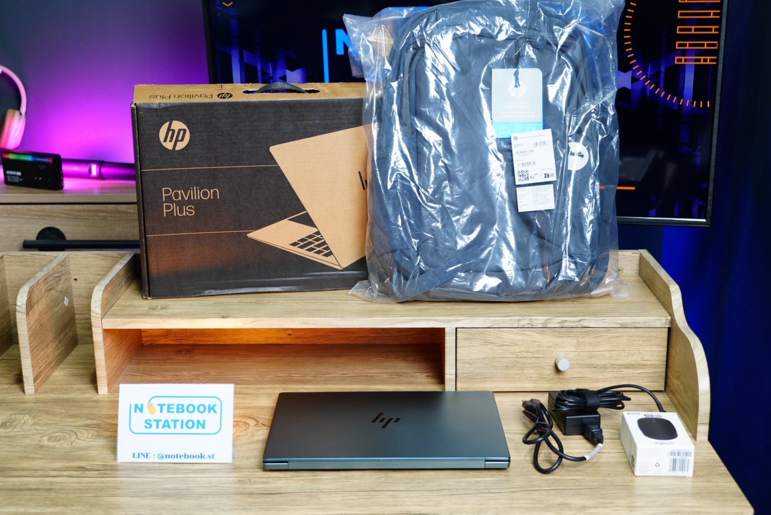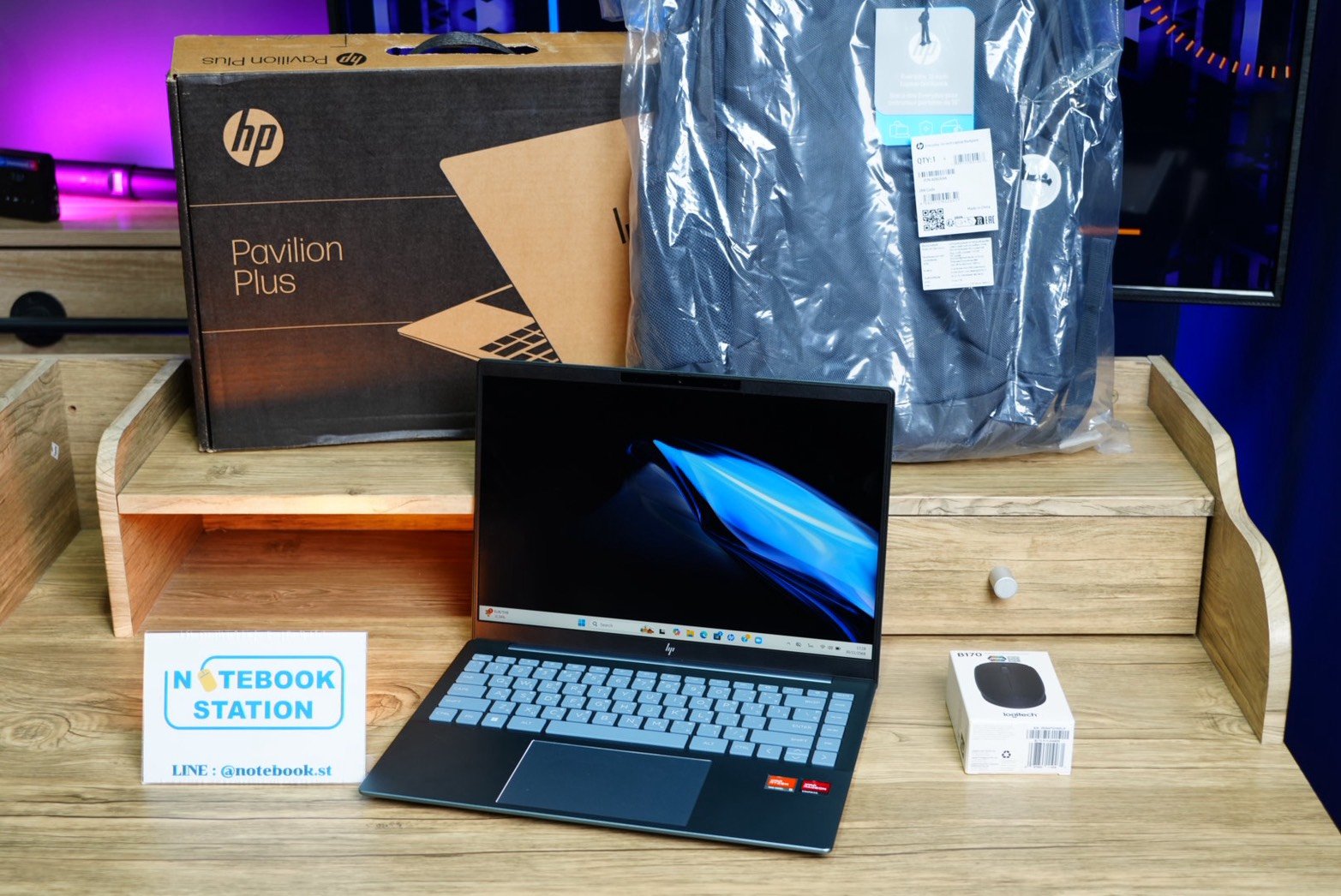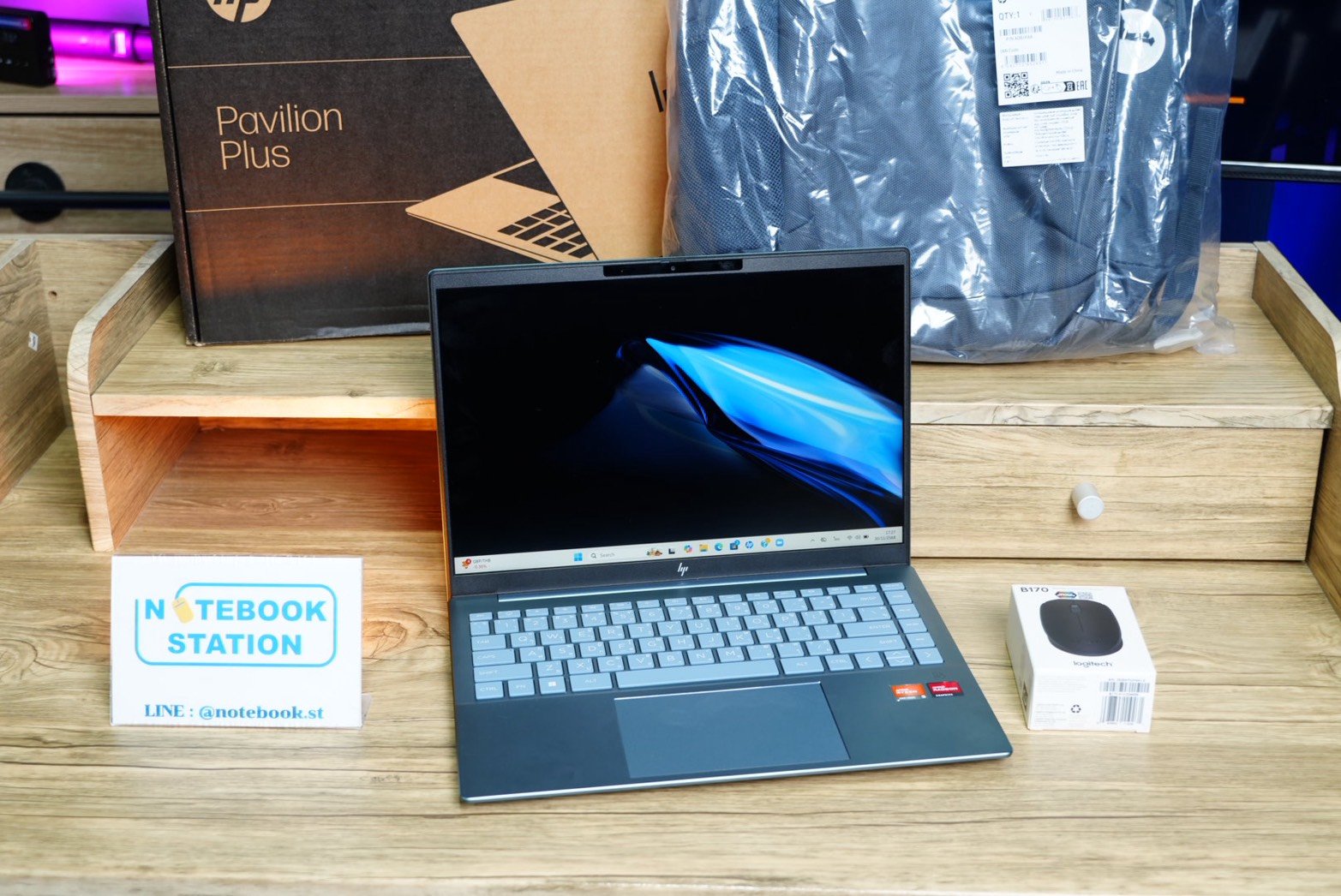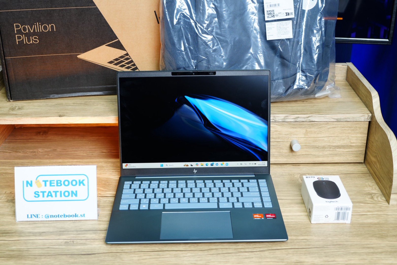 [อุปกรณ์ : ตัวเครื่อง, สายชาร์จแท้, กล่อง, กระเป๋าเป้HP, เมาส์ไร้สายLogitech]