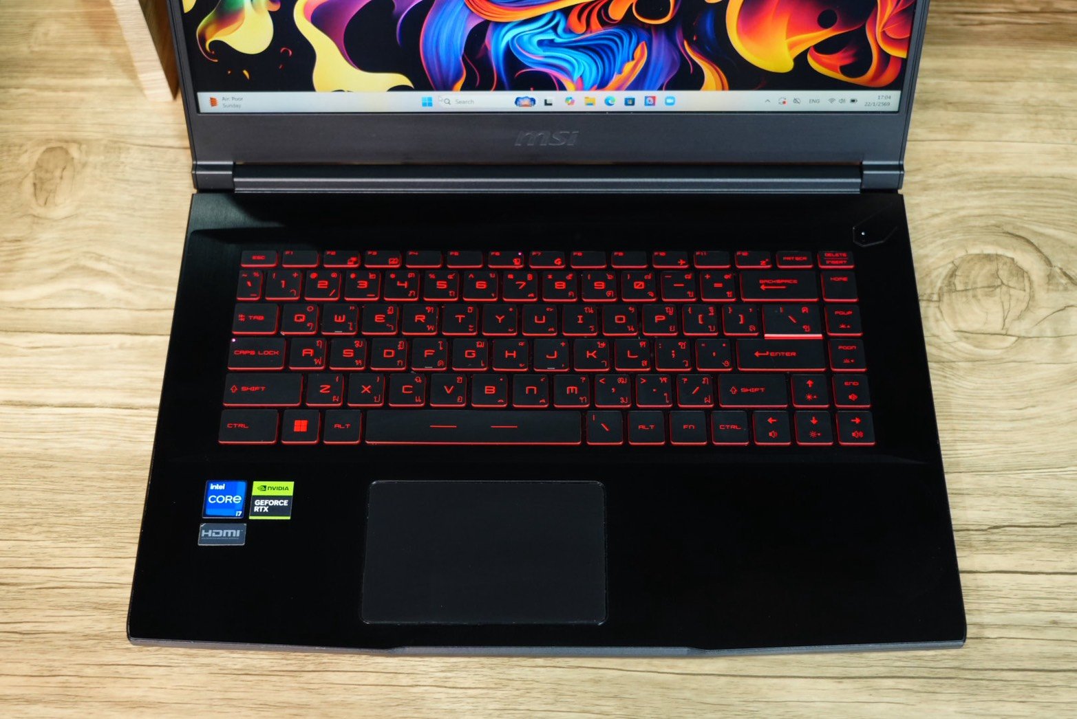 MSI Thin GF63 i7-12650H RTX3050(4GB) Ram16 SSD512 จอ15.6 FHD 144Hz เกมมิ่งสเปคสูง คีย์บอร์ดไฟสีแดง เครื่องสวย น้ำหนักเบาไม่ถึง2kg ขายเพียง 19,990.- อุปกรณ์แท้ครบกล่องพร้อมกระเป๋าเป้