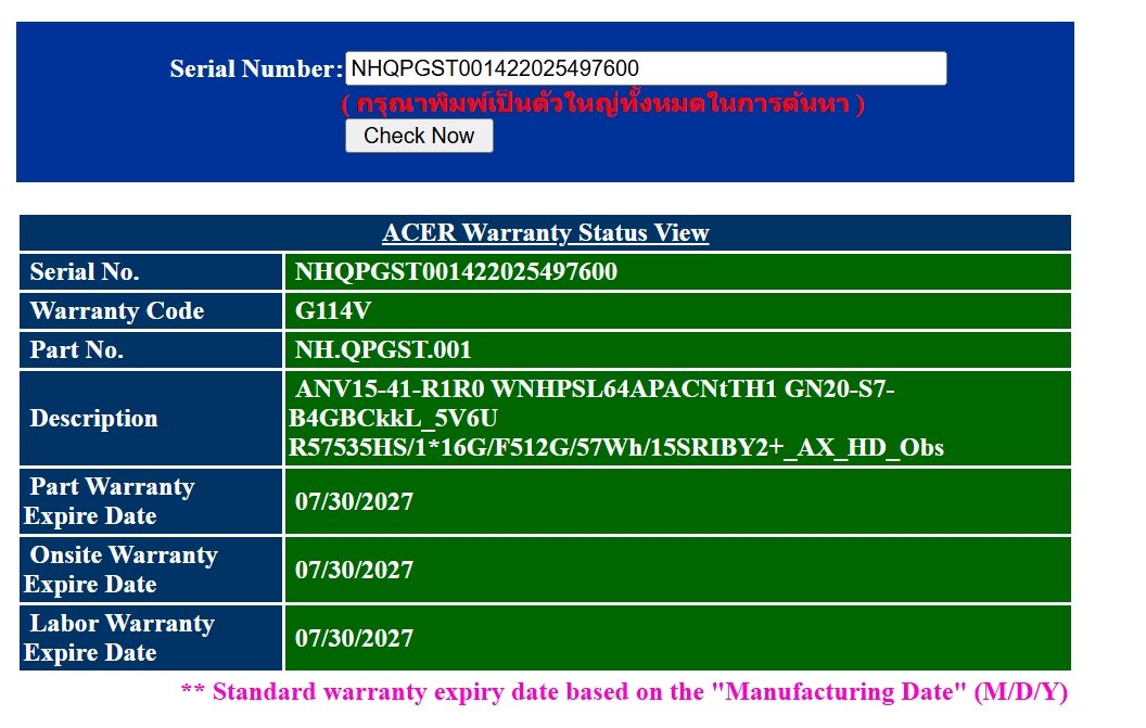 [ประกันศูนย์ : 30/07/2027 ] Onsite Warranty