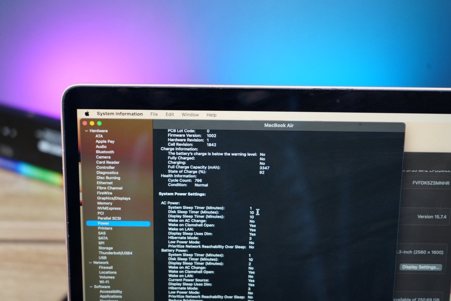 รอบชาร์จ Cycle count 796 ครั้ง สถานะ:ปกติ สามารถใช้งานได้ปกติทุกอย่าง