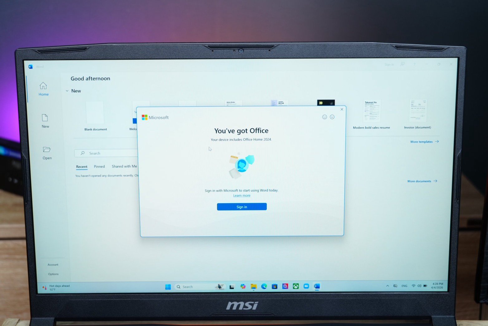 - Windows 11 Home + Microsoft Office Home & Student 2024