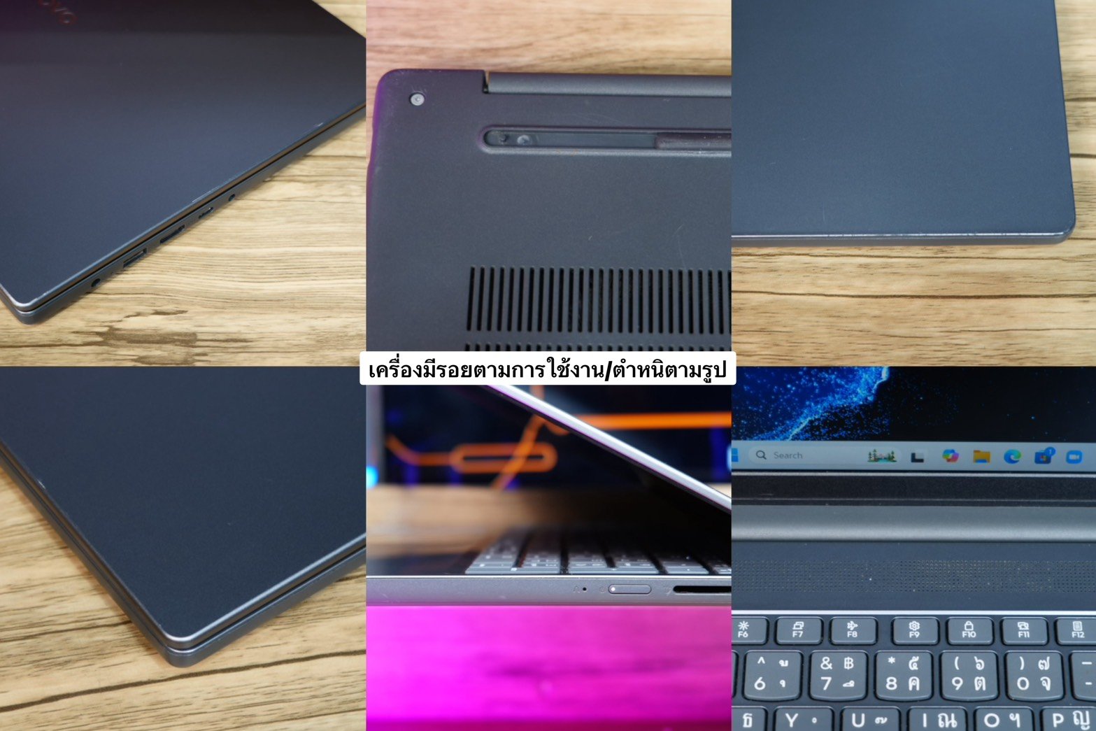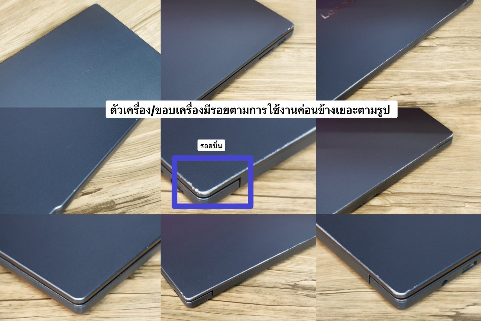 :ตัวเครื่อมีรอยตามการใช้งานค่อนข้างเยอะ ยางรองฐานใต้เครื่องไม่เต็ม รอยจอนอก(ขณะเปิดใช้งานสังเกตุแทบมองไม่เห็น) ตามรูป ตำหนิไม่มีผลต่อการใช้งาน สุขภาพแบตดี สามารถใช้งานได้ปกติทุกอย่าง พร้อมมีประกันศูนย์ยาวถึงปี2027 Lenovo ซ่อมฟรีถึงบ้าน