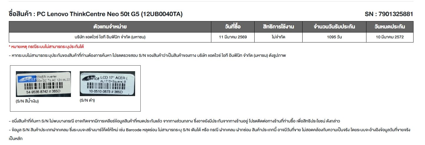 [ประกันศูนย์lenovo : 19/11/2028]