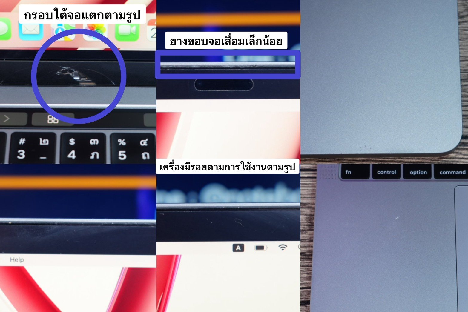 :ตัวเครื่องมีรอยตามการใช้งาน รอยขอบเครื่อง ของยางจอเสื่อมเล็กน้อย กรอบใต้จอแตก* ตามรูป สามารถใช้งานได้ปกติทุกอย่าง รอบชาร์จ Cycle count 517 ครั้ง สถานะแบต:แนะนำให้เข้ารับบริการ